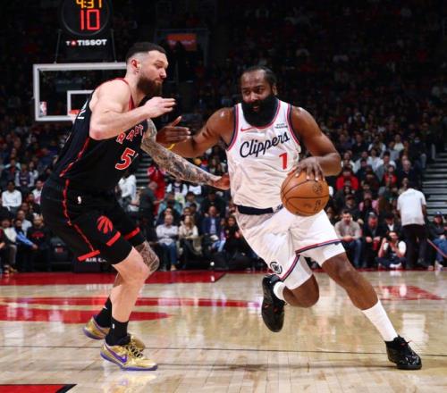 重返故地小卡缺阵!哈登31+10+加时独得8分,快船逆转猛龙5连胜
